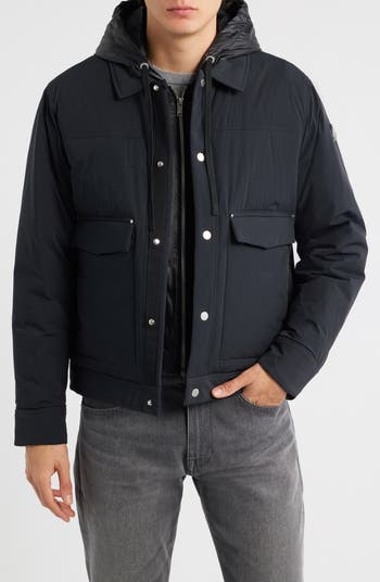 The chill in the air is no match for the warmth and comfort you get by layering on this jacket made with a durable nylon-blend shell complete with a down-filled bib that easily detaches for versatile wear.