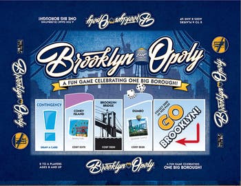 BROOKLYN-OPOLY - A Borough of Fun! How do you make a game about The Great Big Borough of Brooklyn? It’s full of outdoor adventures, family attractions, rich history, and of course...street smarts - a little something for every Brooklynite! Looking for a fun way to experience a big part of New York City? Here’s a quick idea of how to play! Buy your favorite Brooklyn properties, and increase your rent by collecting City Blocks and trading them in for Keys to the City. Sound easy? Well, add in some traffic jams, property tax, and parking fines and it gets a little more difficult and a lot more fun! Get your game on! Choose your token and advance to GO Brooklyn! You may soon be elected Borough President…or out of the game for eating too many slices of pizza Margherita! This is BROOKLYN... and it’s your roll! Opoly Board Game, by Late For The Sky. A great game for everyone, from kids to adults! For 2-6 Players.