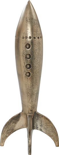 Take your home decor to intergalactic dimensions with this conversation-starting aluminum statue cast in the shape of an antique-finish rocket ship.