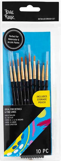 BREA REESE: DETAILED 10 PC BRUSH SET - Achieve precision and finesse with the Brea Reese Detailed 10 pc Brush Set, specially designed for intricate details and fine lines. These brushes feature durable Gold Taklon bristles, which maintain their shape and performance even after multiple uses. With a mix of small-sized round, flat, and linear brushes, this set is perfect for artists looking to bring even the tiniest aspects of their work to life. Whether you’re painting delicate feathers, adding fine lines to a portrait, or working on miniature models, these brushes offer the perfect level of control. Ideal for projects that require meticulous attention to detail, such as painting animal fur, highlighting facial features in portraits, or creating fine, detailed lettering on signs or invitations, this brush set ensures you can get up close and personal with your art. The set includes an array of brush shapes, allowing you to add finishing touches or enhance textures. Complete with a handy storage pouch, these brushes are perfect for any artist who specializes in detailed work and wants to keep their tools protected and ready to use. Detailed Brush Set INCLUDES 10 brushes and 1 storage pouch.