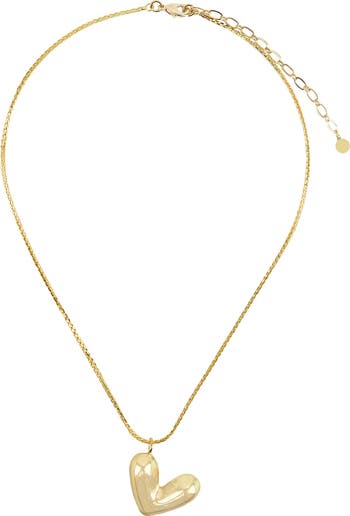 A bubbly heart pendant swings from a texture-rich rope chain in this charming necklace plated in 14-karat gold.