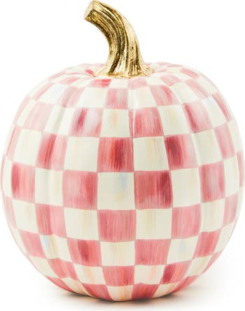 Add a touch of seasonal charm to your holiday decor with this handmade resin pumpkin painted with bubblegum-pink stripes and trimmed with a gold-leaf stem.