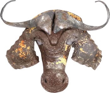 The Cape Buffalo is a familiar sight to visitors of African parks and reserves. Massive in size, it has unique horns that are fused at the base forming a continuous bone shield called a boss. Our striking buffalo animal mask is handmade from recycled car tin by artisans in Zimbabwe. Enjoy this contemporary Junkyard Safari Trophy that has enormous personality and is eco-friendly! Individual pieces will vary in color