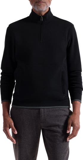 In-between-season layering gets easy in this quarter-zip pullover made from a piqué exterior with a soft heathered jersey interior for a comfortable, double-faced finish.