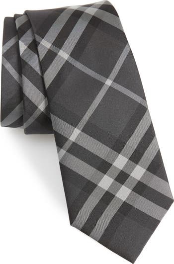 Distinguished grayscale Burberry checks detail a classic tie crafted in Italy from pure silk.