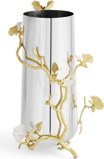 Taking its inspiration from the double-butterfly leaf of the ginkgo biloba tree, this vase is a flora-turned-fauna work of art that radiates warmth, movement and elegance as part of your refined decor.