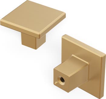 - 10 PACK SQUARE KNOBS: Tackling a large remodel, DIY project or interior update? Streamline cost with our 10 packs. Transform your home quickly and easily with a hardware refresh. Stunning brushed brass finish hardware pulls.