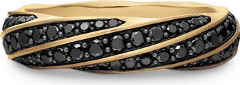 The label s signature spiral motif is underscored in pavé black diamonds on this handcrafted 18-karat gold band.