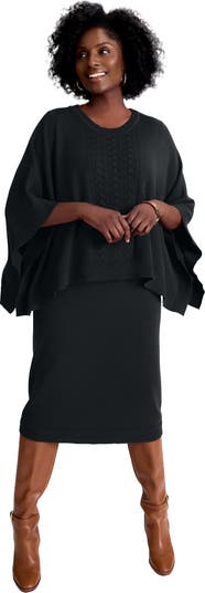 A sophisticated dress for your next soiree, this cable sweater dress is cut with a chic cape overlay. Wear this with strappy heels for a statement finish.
