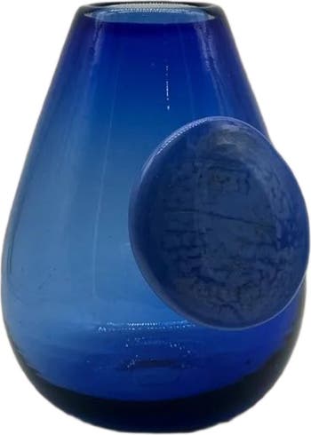 The Cahuil vase is made using recycled glass by artisans in Guadalajara Mexico. Blue colors. Holds Water.