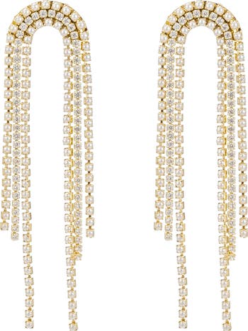 Stunning rainbow chain gold earrings with pearl and crystal details.