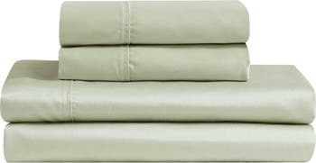 Drift off to dreamland enveloped in the luxurious softness of this sateen sheet set made from a silky lyocell blend with an elegant drape that may make you want to linger longer in bed.