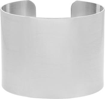 A wide silhouette and brushed finish enhance the elegant allure of this cuff bracelet that s ready to make a statement on your wrist.