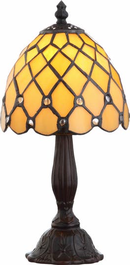 Add a touch of classic elegance to the tables in your living room with this lovely Tiffany-inspired table lamp. Warm shades of ivory imbued into each glass piece provide soft ambient light, punctuated with clear ‘jewels’, which cast a beautiful pattern on the surrounding walls. While inspired by traditional design, this piece is updated with the functionality expected today -- an on/off switch at the top of the silk-wrapped cord and LED bulb compatibility.