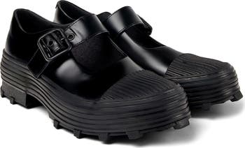 A ribbed midsole and chunky lugs bring rugged charm to this everyday mary jane cut from smooth leather and topped with an adjustable strap.