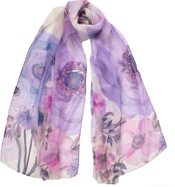 Named after the famous piazza in Rome, Campo de Fiori (field of flowers), this sheer silk Georgette long scarf has a floral print. 100% Made in Como, Italy.