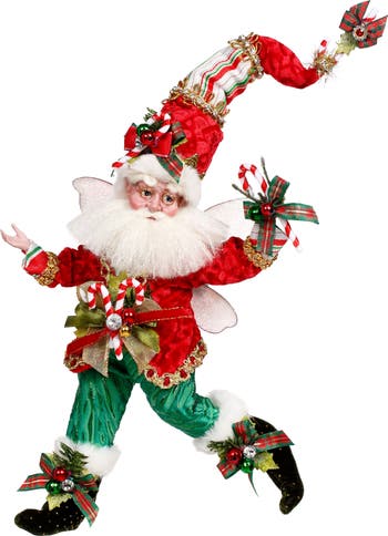 The Mark Roberts Candy Cane and Holly Fairy dazzles with refined holiday elegance, adorned in crisp red-and-white accents and holly details. Graceful wings and intricate craftsmanship highlight his collectible quality. A timeless statement piece, he elevates any seasonal décor with enchantment.