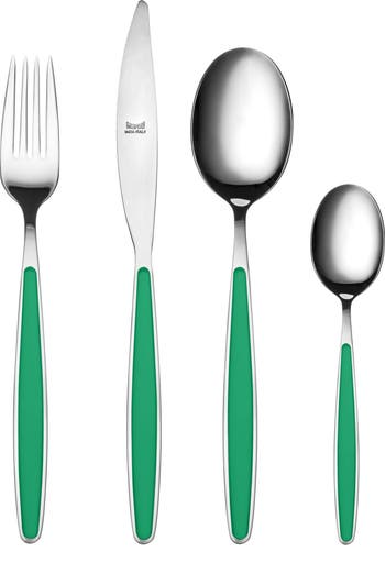 The Caramella Collection from Mepra is the perfect combination of color and sophistication. Elevate your dining experience with our Italian-crafted flatware, skillfully made from top-tier 18/10 stainless steel and resilient Fire-proof Silicon. Timeless in design, these pieces feature a colorful and elegant form. With a seamless construction, the Stainless Steel body extends to the handle s end, ensuring durability. The knives are enhanced with double serration for enduring sharpness and the entire set is dishwasher safe and backed by a lifetime warranty on the handle. Discover a perfect balance of aesthetics and functionality that s not only long-lasting but also food-safe and stylish.