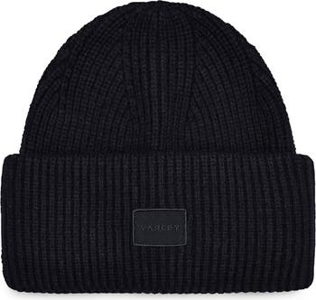 A subtle logo patch brands this ribbed knit beanie that will come in handy on chilly days.