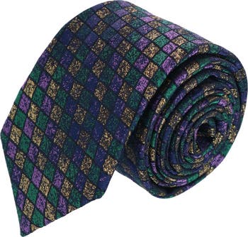 Add a splash of vibrant personality to your wardrobe with the Carnival Diamond Multi-Colored Novelty Silk Necktie. Crafted from premium silk and lurex, this eye-catching accessory features a dynamic diamond pattern in a lively array of colors, reminiscent of the festive energy and exuberance of a carnival celebration. The bold design makes it the perfect statement piece, ideal for those looking to brighten up a formal outfit or add a playful touch to semi-casual attire. Whether worn to a party, a creative workplace, or a special event, this tie ensures you will stand out in style. With its luxurious feel, durable quality, and dazzling design, the Carnival Diamond Necktie is more than an accessory, it is a celebration of color and individuality. Treat yourself or gift it to someone who loves bold and unique fashion choices. Measures 57 1/2 x 3 inches.