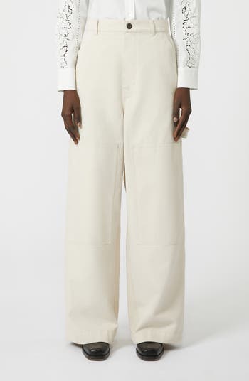 Wide legs and workwear-inspired details bring laid-back, casual-cool style to cotton-twill carpenter pants complete with roomy pockets.