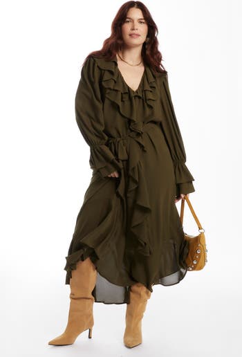 Cascading from hem to hem, this ruffled maxi dress flows like a memory. A layered neckline and sash-tied waist bring quiet structure, shaping the silhouette while letting light and movement play through every gathered fold.