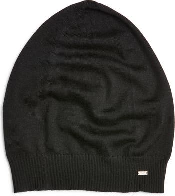 Bundling up feels ultraluxe in this soft Italian-cashmere beanie refined with ribbed trim and an engraved logo plaque.