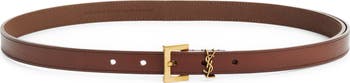 An elegant, iconic—and now functional—Cassandre logo doubles as the keeper loop on this sleek Italian-leather belt.