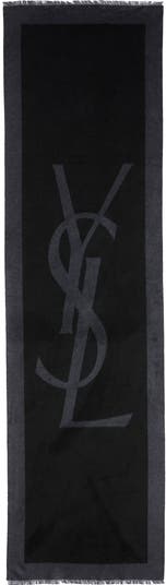 The house-signature Cassandre logo complements the contrasting border trim of this rectangular scarf crafted in Italy from whisper-soft silk.
