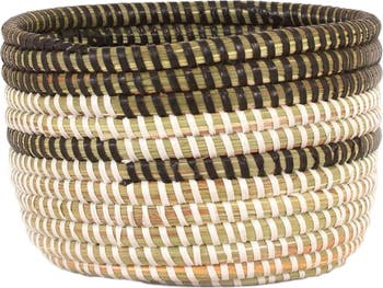 This adorable little basket is perfect for keys, jewelry, catchall bowl by the entryway, even as a tiny succulent planter! Looks great with the other even smaller basket in this collection. Hand woven in Senegal by a cooperative of rural women from wild grasses and strips of plastic. Durable, charming and minimalist - a perfect little gift that also gives back to empower women.
