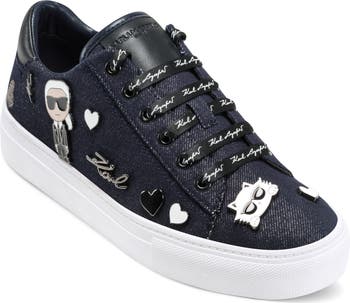 Enamelled pins featuring a portrait of the designer and Choupette herself highlight this low-top sneaker finished with logo-printed ribbon laces.