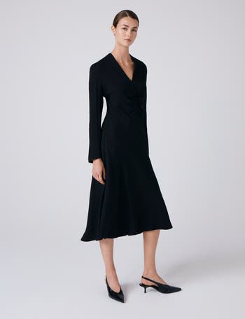 Cecelia is all about the subtle details. We’ve added ruching at the front to give this minimalist piece a softly demure twist. Crafted from smooth crepe for a flattering drape, it features full-length sleeves with gentle volume at the shoulder and is cut to fit close to the body.