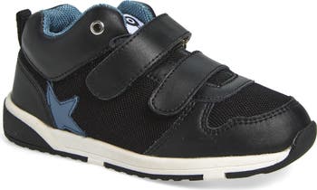 Adjustable hook-and-loop straps perfect the fit of this play-ready sneaker made with breathable mesh and grounded on a nonslip, flexible sole to keep each step steady