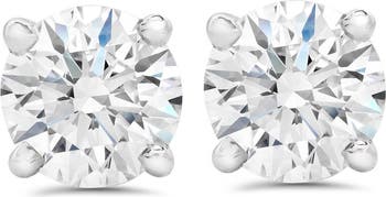 Womens matching pair of studs features two round brilliant cut genuine certified GH color VS2-SI1 clarity lab grown diamonds. Both diamonds are prong set in solid 14k white gold with screw backs.