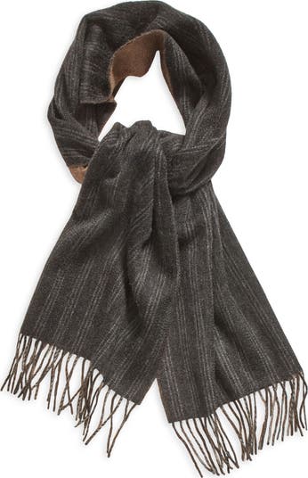 Chalky stripes detail one side of a reversible scarf woven in Italy from double-face cashmere and finished with a generous fringe.