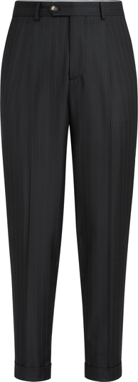 The classic chalk stripe pattern is enhanced by the refined virgin wool’s qualities. A cupro lining completes this garment and provides added comfort.