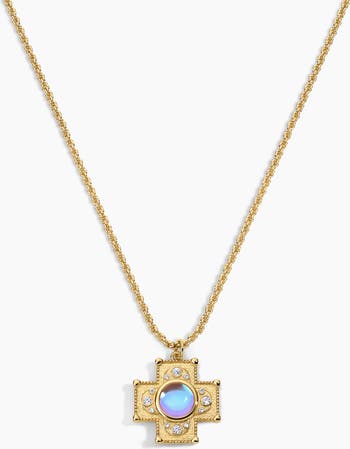 An everyday accessory with vintage-inspired elegance, the Chambers Necklace shines bright with an opalescent statement stone framed with CZ accents. Pair this piece with a tennis necklace and the Chambers Earrings for an elevated look with dramatic, old world edge.