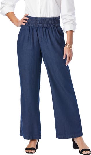 This trouser is wide-leg perfection. With an easy pull-on elastic waistband and wide legs in lightweight denim, it s perfect for a casual spring look with a white tee and sneakers.