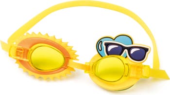 BESTWAY: CHARACTER KIDS GOGGLES - SUN - Let your little swimmer shine bright with the Bestway Hydro-Pro Character Kids Goggles – Sun Edition, designed to bring both fun and functionality to the pool. With an adorable sun-themed design, these cheerful yellow goggles give kids the chance to express their personality while staying safe and comfortable in the water. Built for children ages 3 and up, they feature soft, comfort-fit eyecups that form a gentle, leak-resistant seal around the eyes. The polycarbonate lenses offer a wide field of vision and are equipped with UV protective coating to shield young eyes from the sun during outdoor swims. A fully adjustable nose bridge and silicone head strap ensure a secure, personalized fit that won’t slip out of place. Whether they’re splashing in the pool or learning to swim, the Hydro-Pro Sun Goggles deliver bright style, safety, and all-day comfort—making them a must-have for any water-loving kid. OVERVIEW: Suitable for ages 3 years and up. Soft, comfort-fit eyecups. UV protective coating. Fully adjustable nose bridge. Fully adjustable silicone head strap. 100% latex free. Sun character-themed.