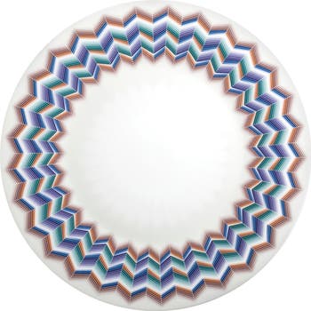 The Missoni Zig Zag collection is a homage to the iconic zigzag stitches that made Missoni s designs instantly recognizable and elevated the brand to global luxury status in the 1960s. Multicolored or self-patterned white, the Zig Zag line is a best-selling line. The range includes dinnerware, flatware, glassware, trays, and scented candles.