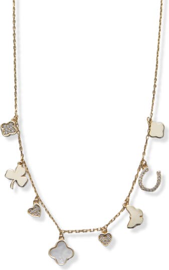 Good luck charms detailed with mother-of-pearl and cubic zirconia make this sterling silver necklace a go-to.