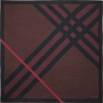 A square scarf made in Italy from cashmere silk twill. The design is digitally printed with the Burberry Check in a seasonal truffle brown colourway.||Square|Hand-rolled edges|Printed Burberry lettering at corner
