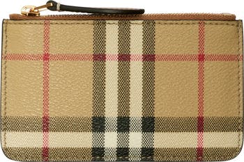 An Italian-made coin case in Burberry Check, detailed with a chain strap and dog clip.||Zip closure|Hand-painted edges|Brushed metal hardware|Comes with a dust bag
