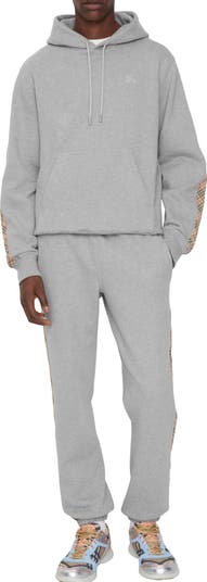 Jogging pants in lightweight loop-back cotton, framed with Burberry Check taping in our signature archive beige colourway. The style is cut to a slim fit and is embroidered with a tonal Equestrian Knight Design.||Elasticated drawcord waist|Side slip pockets, back patch pocket|Embroidered Equestrian Knight Design at back pocket
