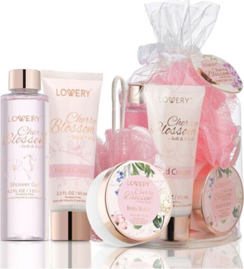 - Pretty in Pink: This 4-piece Cherry Blossom spa set is infused with antioxidants and essential fatty acids for skin-loving care.