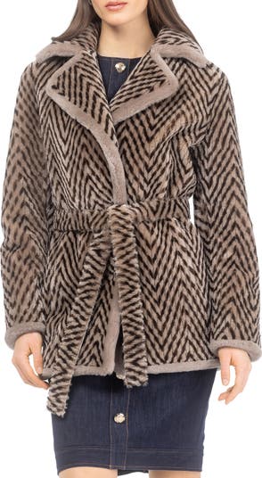 The Chevron Printed Grooved Genuine Shearling Jacket offers a bold blend of texture and pattern, crafted from soft shearling Genuine Shearling for exceptional warmth.