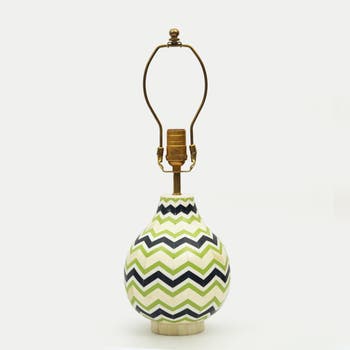 Bold yet refined, this handcrafted lamp base is where tradition meets contemporary design. Featuring an eye-catching chevron pattern in cool shades of blue, crisp white, and soft green, each piece is meticulously inlaid by skilled Indian artisans using bone and resin—an age-old technique passed down through generations.