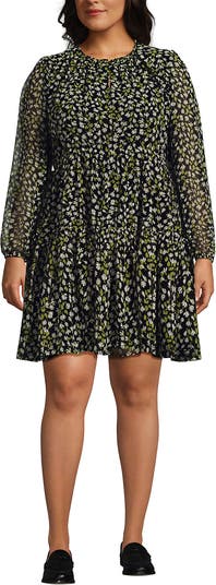 This woven chiffon dress brings just the right balance of elegance and versatility. It is made from lightweight chiffon with an adjustable drawstring waist that lets you choose a more defined or relaxed fit. A ruffled neckline with a one-button keyhole adds a touch of romance. The front and back shirring on the tiered skirt create soft movement with every step.