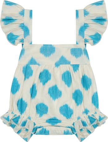 Chloe Baby Romper Cream Aqua Ikat