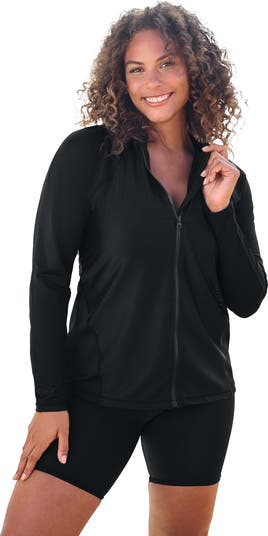 Protect from sun exposure with this swim-friendly scoop neck tee in colorfast , complete with pretty contrast detailing. Wear a swim tee over your swimsuit, in and out of the water. Does not feature a built-in shelf bra. Unlined. Functional nylon zipper.